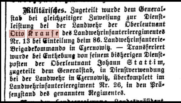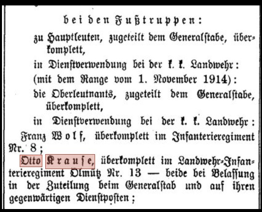 1913 April: He joined the „Generalstab“, May 1st. ( General Staff ). He was stationed in Olmuetz /Olomuc (Czechia), but it seems that he was also working in Czernowitz.