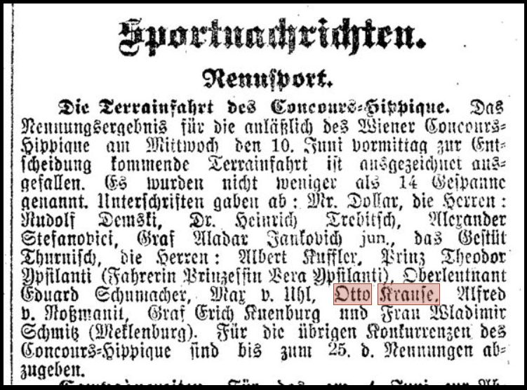 1914 May: the Newspaper „Reichspost“ informs us that Otto was enjoying the sport of a „horse-drawn carriage“