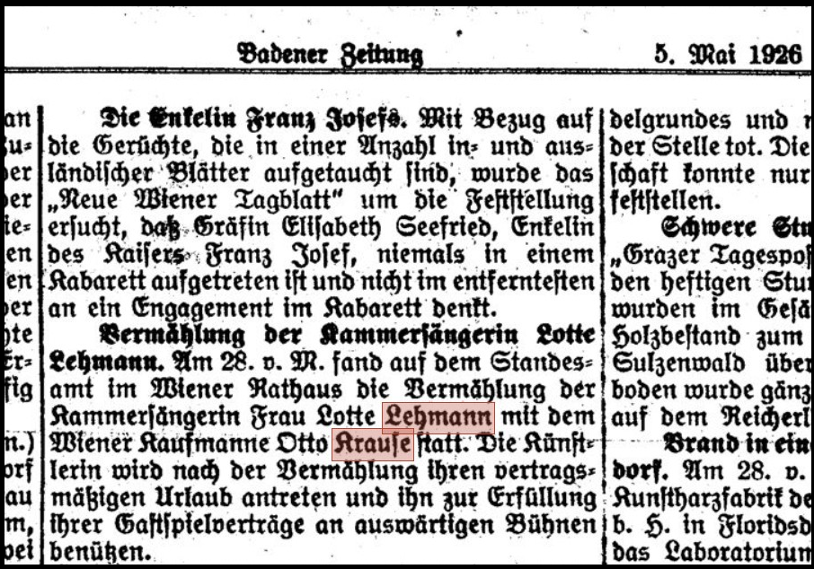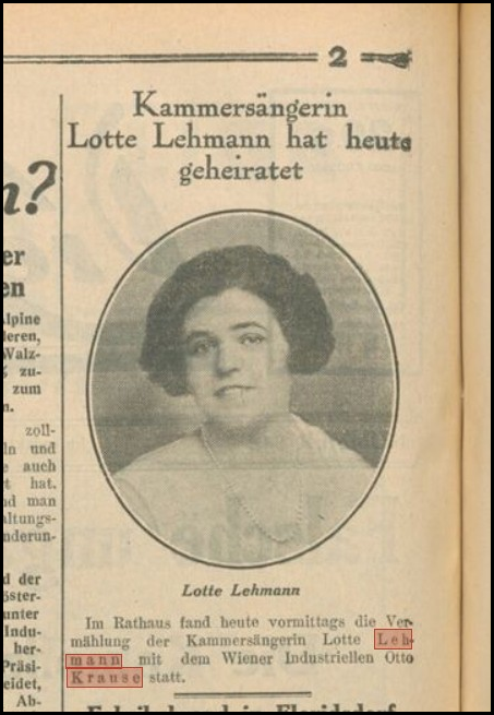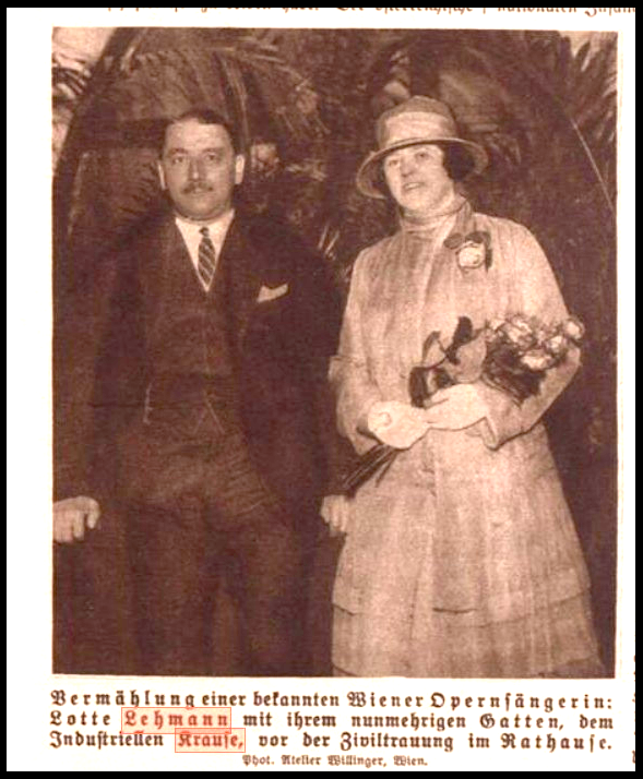 …Frl. Lotte Lehmann yesterday submitted to the directors of the State Opera a request for release from her contract. We have been informed by competent authority that this decision is unrelated to any artistic matters or to the relationship between the artist and the directors of the State Opera, and is attributable only to private personal reasons. At present Frl. Lehmann is firmly determined to leave Vienna permanently….She is presently a patient at a sanatorium in the vicinity of Vienna, undergoing treatment for a nervous disturbance which developed out of entirely private causes.