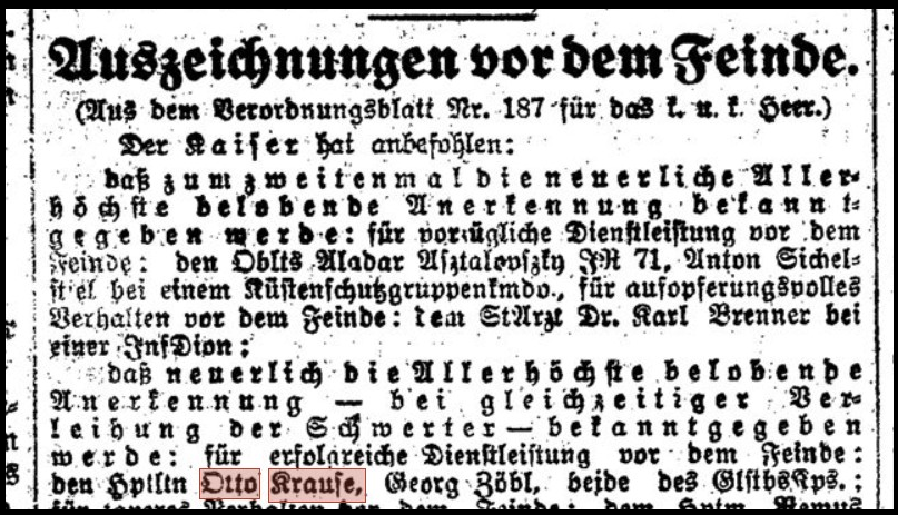 1917 Oct.: Otto got an new Military Cross ( „The Swords“)