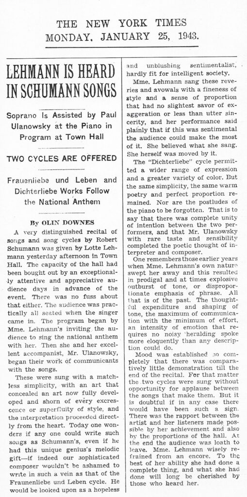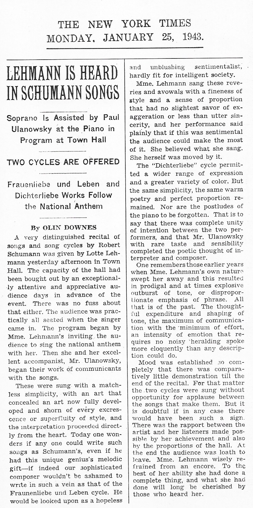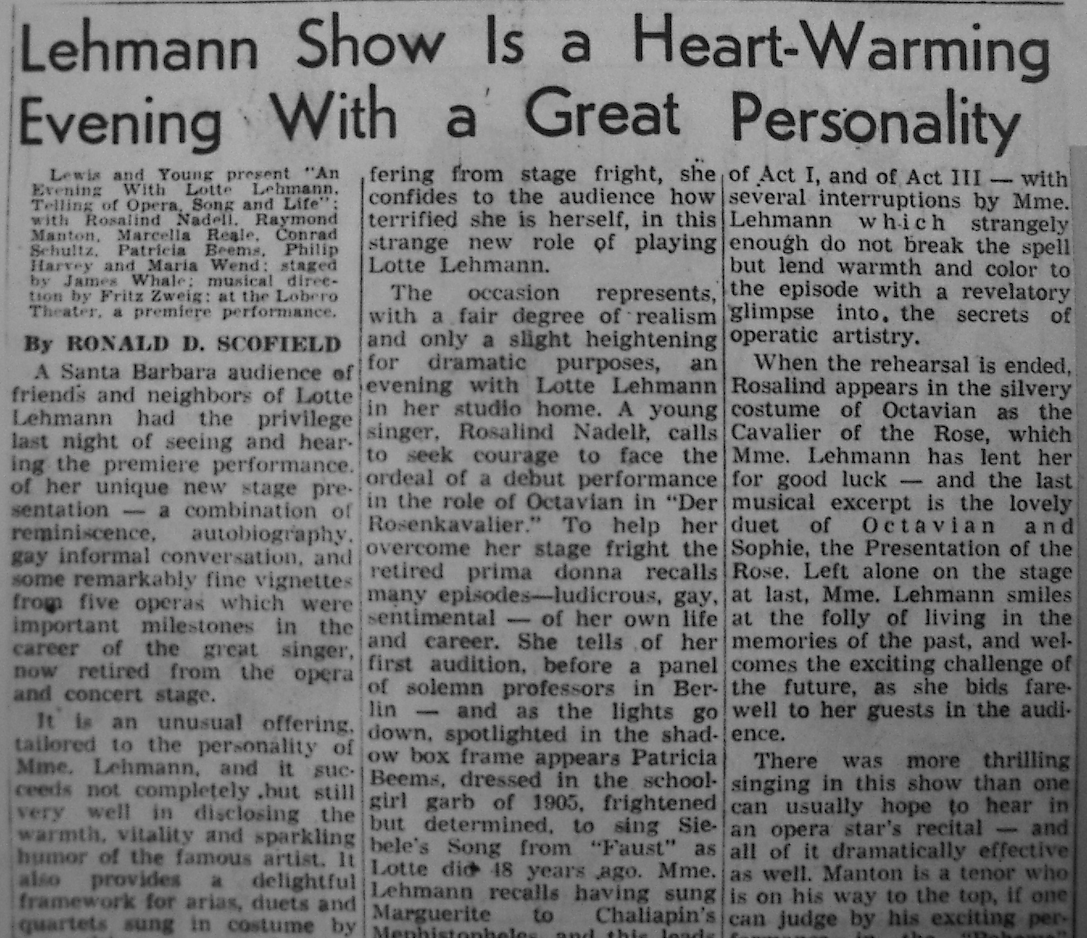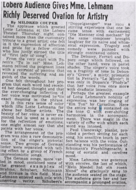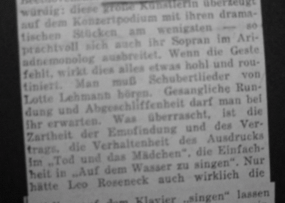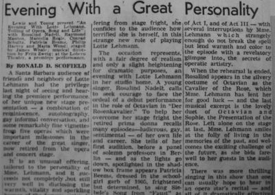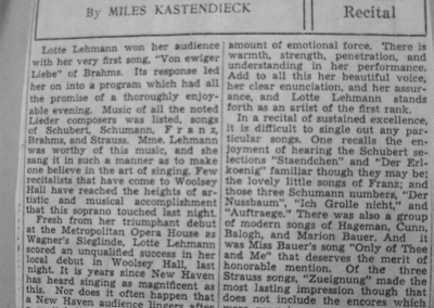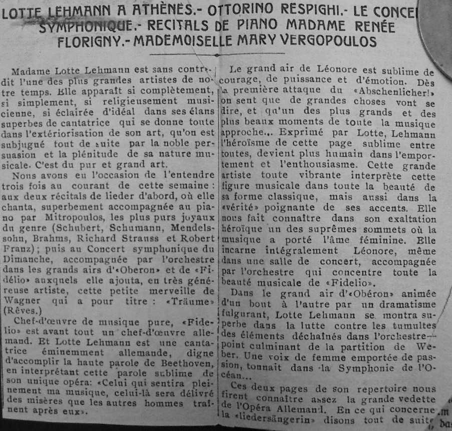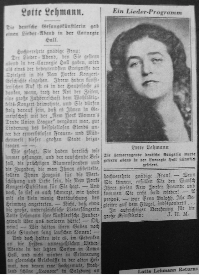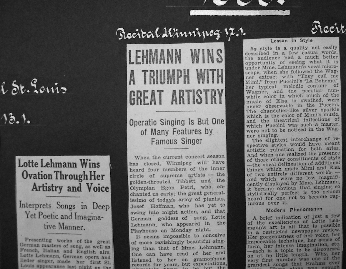 Here’s your chance to read the actual reviews and announcements of Lehmann’s Vienna years. Many thanks to Peter Clausen for his research! We begin with Julius Korngold’s review of the world premier of Frau ohne Schatten by Richard Strauss. Notice the detail with which he writes. And we offer some of Lehmann’s reports from her South American tour. From Die Bühne here are three reviews. At the bottom of this page are various reviews from Europe and the U.S.